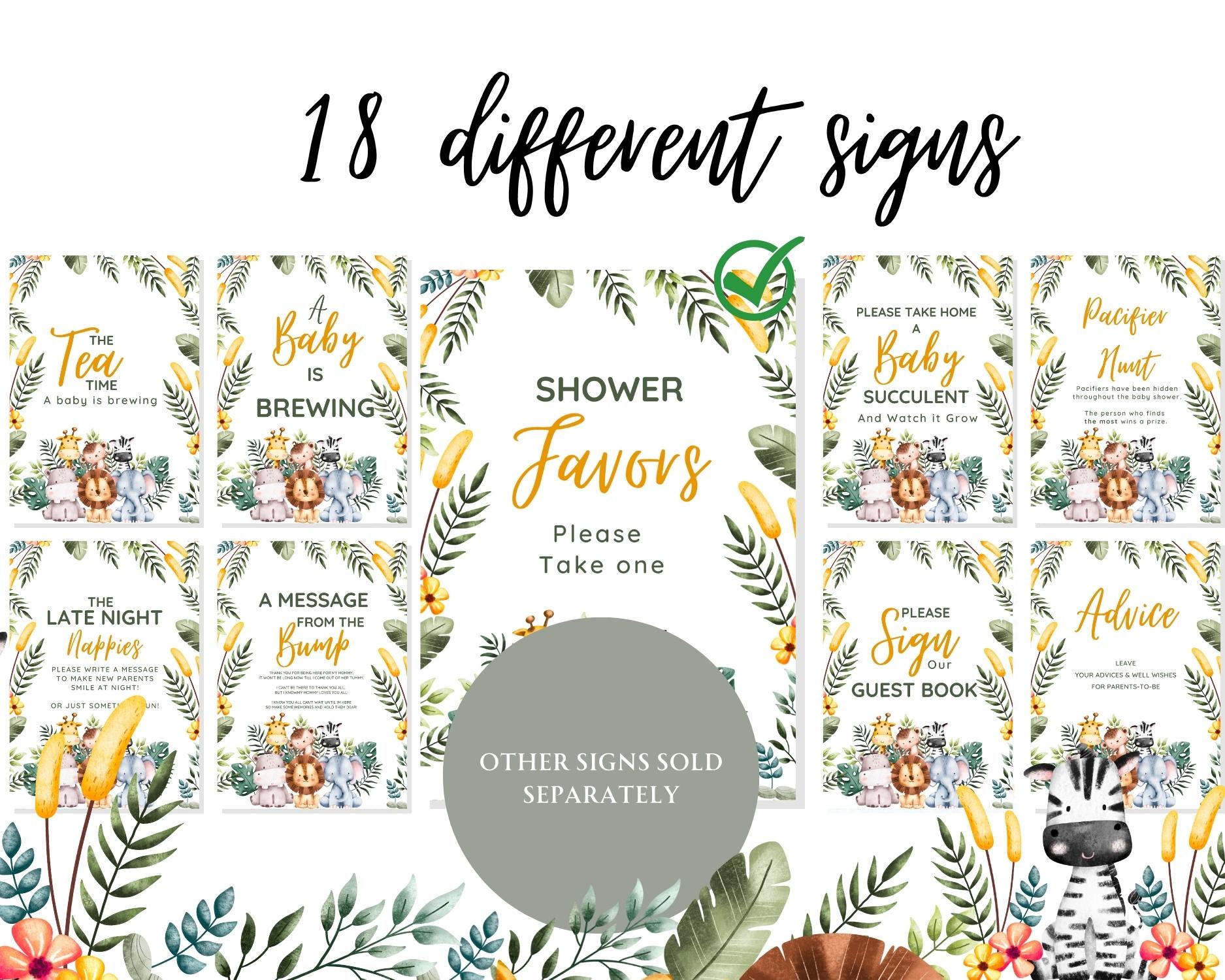 - ☄️Unique Selling Points: Our Safari Baby Shower Favor Sign not only complements your theme but also serves as a memorable keepsake for your guests to cherish long after the celebration ends.