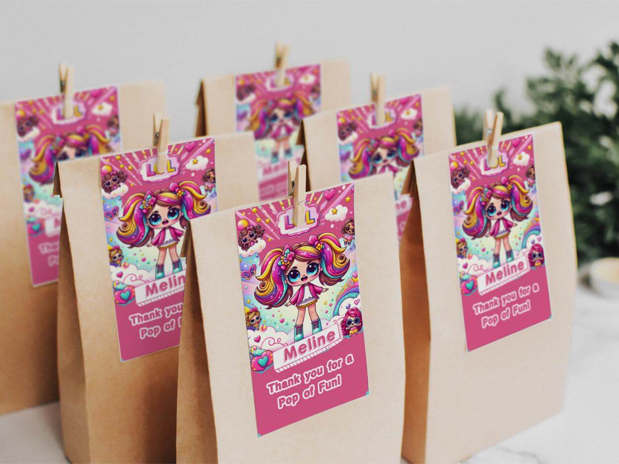 This offer includes editable digital templates for both invitations and matching tags – at no extra cost! Each design is brimming with the excitement and flair of surprise fashion dolls, perfect for a glamorous and unforgettable celebration.
