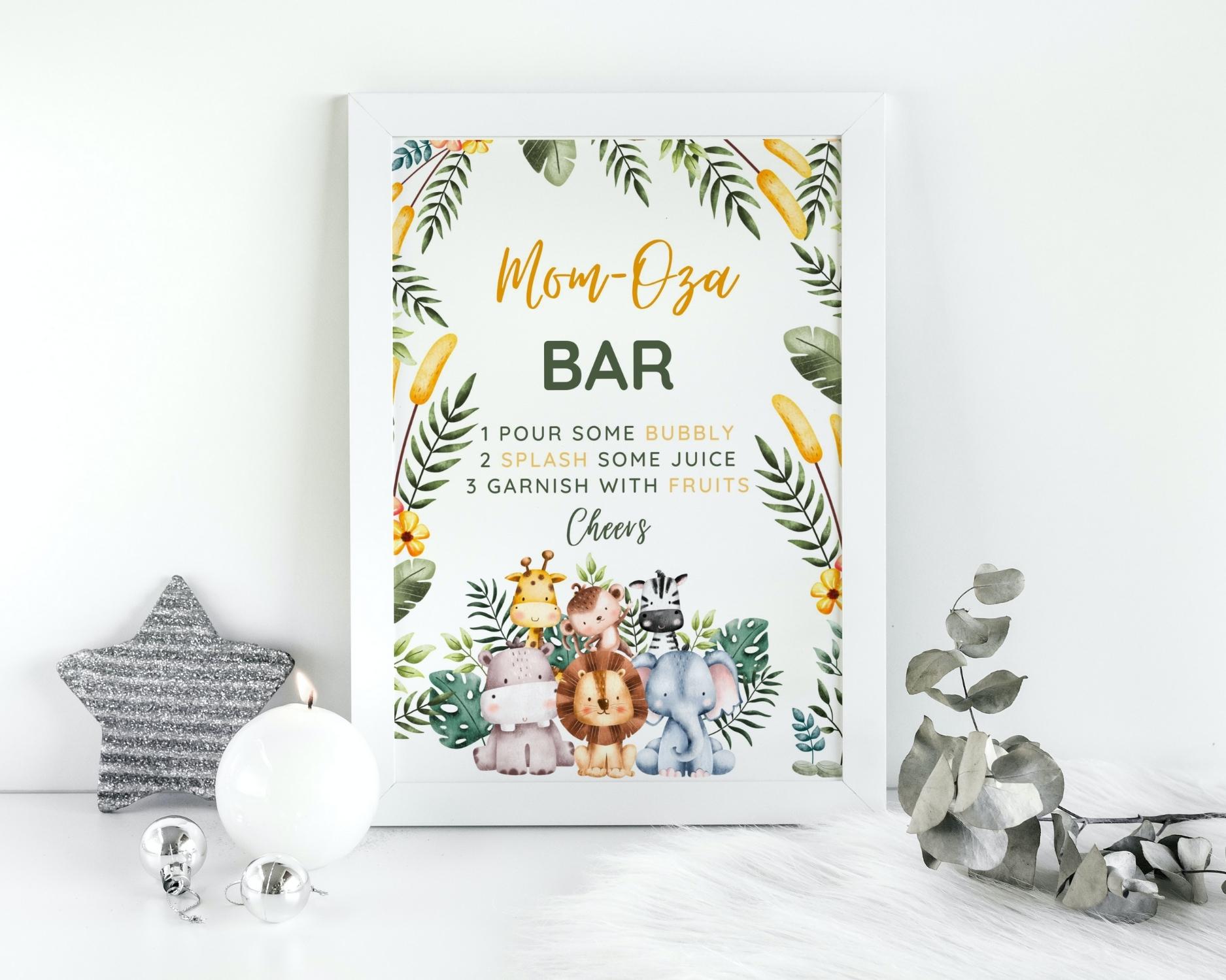 Safari Baby Shower Mom-osa Bar Sign: Printable Mimosa Station Decor, mom osa bar sign