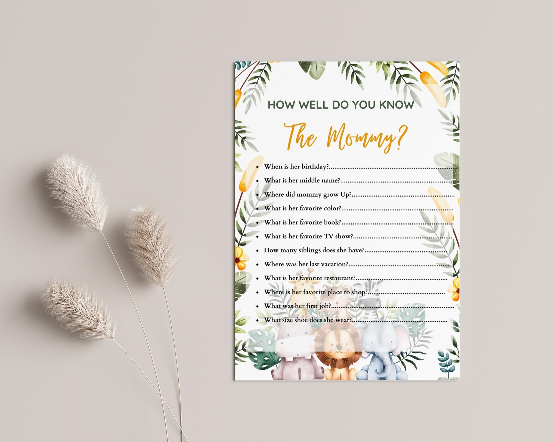 Test your knowledge of the mom-to-be with our ‘How Well Do You Know the Mommy?’ game! This interactive printable invites guests to answer fun and quirky questions about the mom’s preferences, habits, and experiences. From favorite foods to childhood memories, it’s a delightful way to celebrate the guest of honor. You’ll receive two PDF files in different sizes, ready for printing. And if you want to add your own personalized questions, the editable Canva version is at your fingertips. Get ready for laughter, surprises, and a closer bond with the mommy!