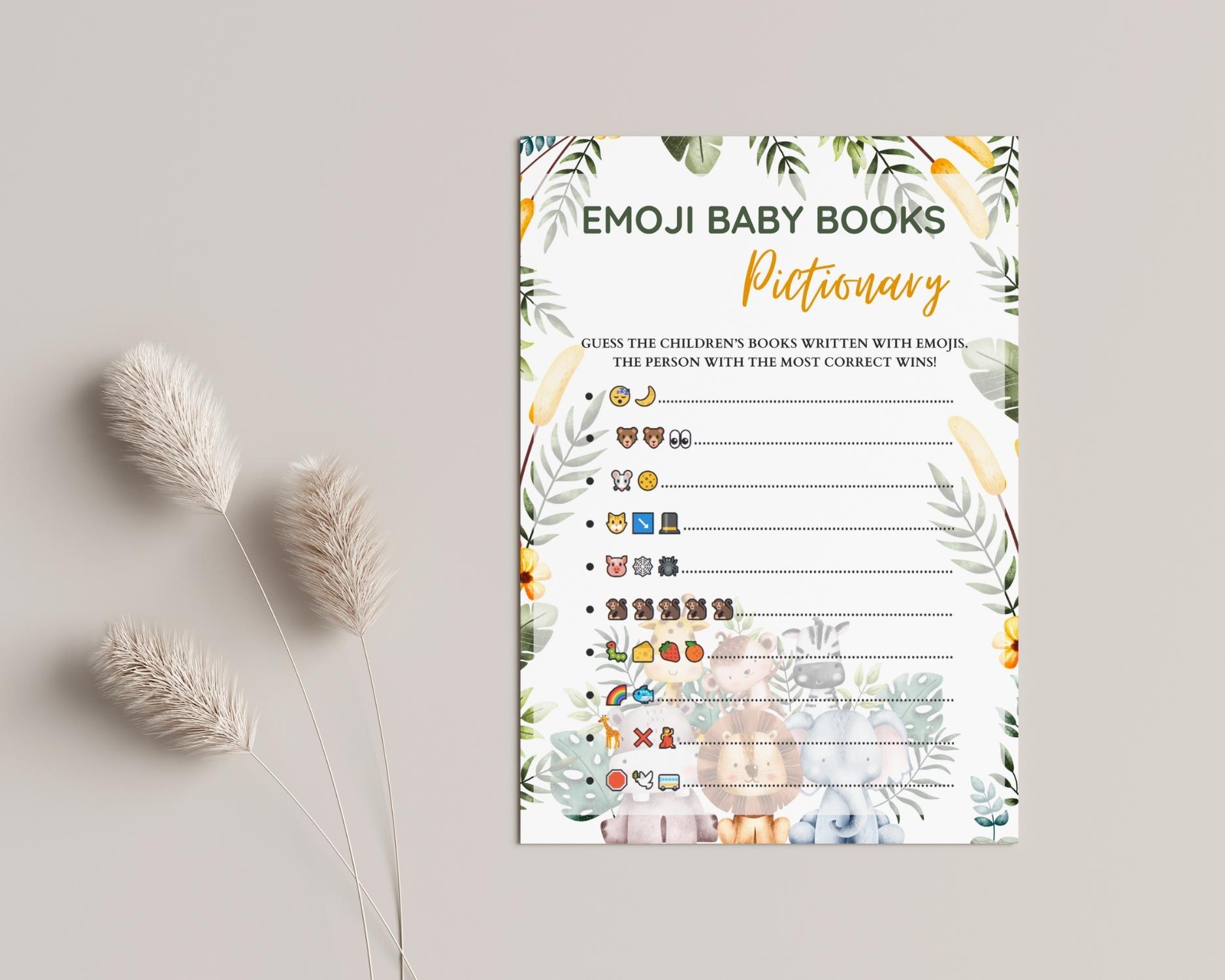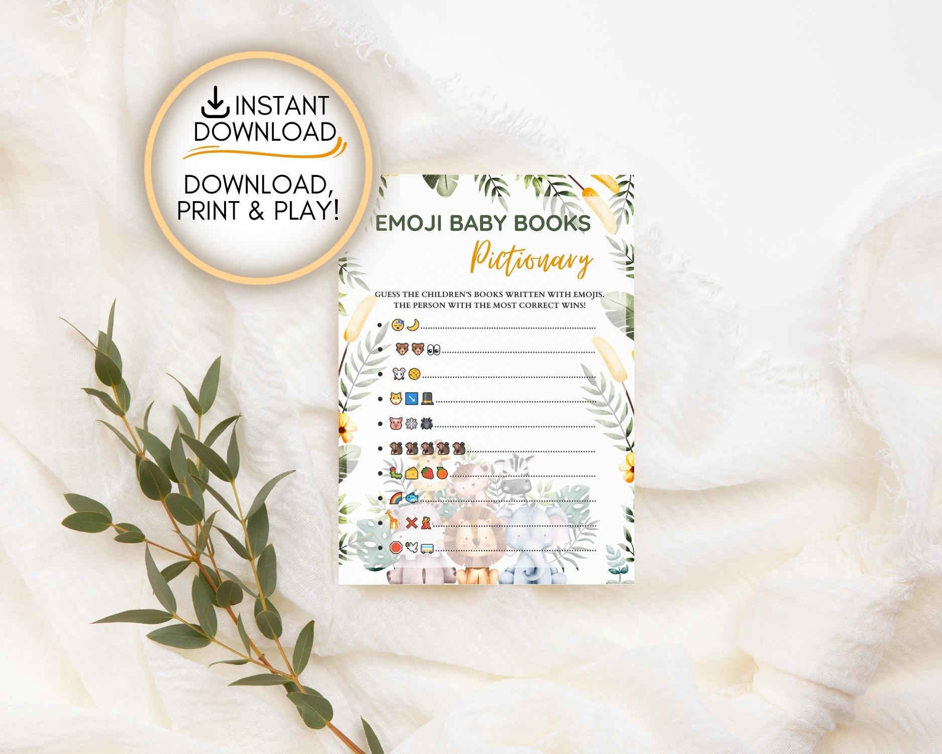 Decode the cuteness with our ‘Emoji Baby Book Pictionary’ game! Guests will decipher popular children’s book titles using emoji clues. It’s a visual twist on the classic game that sparks laughter and nostalgia. You’ll receive two PDF files in different sizes, ready for printing. And if you want to add more book titles or personalize the design, the editable Canva version awaits. Get ready to express your love for literature, one emoji at a time!