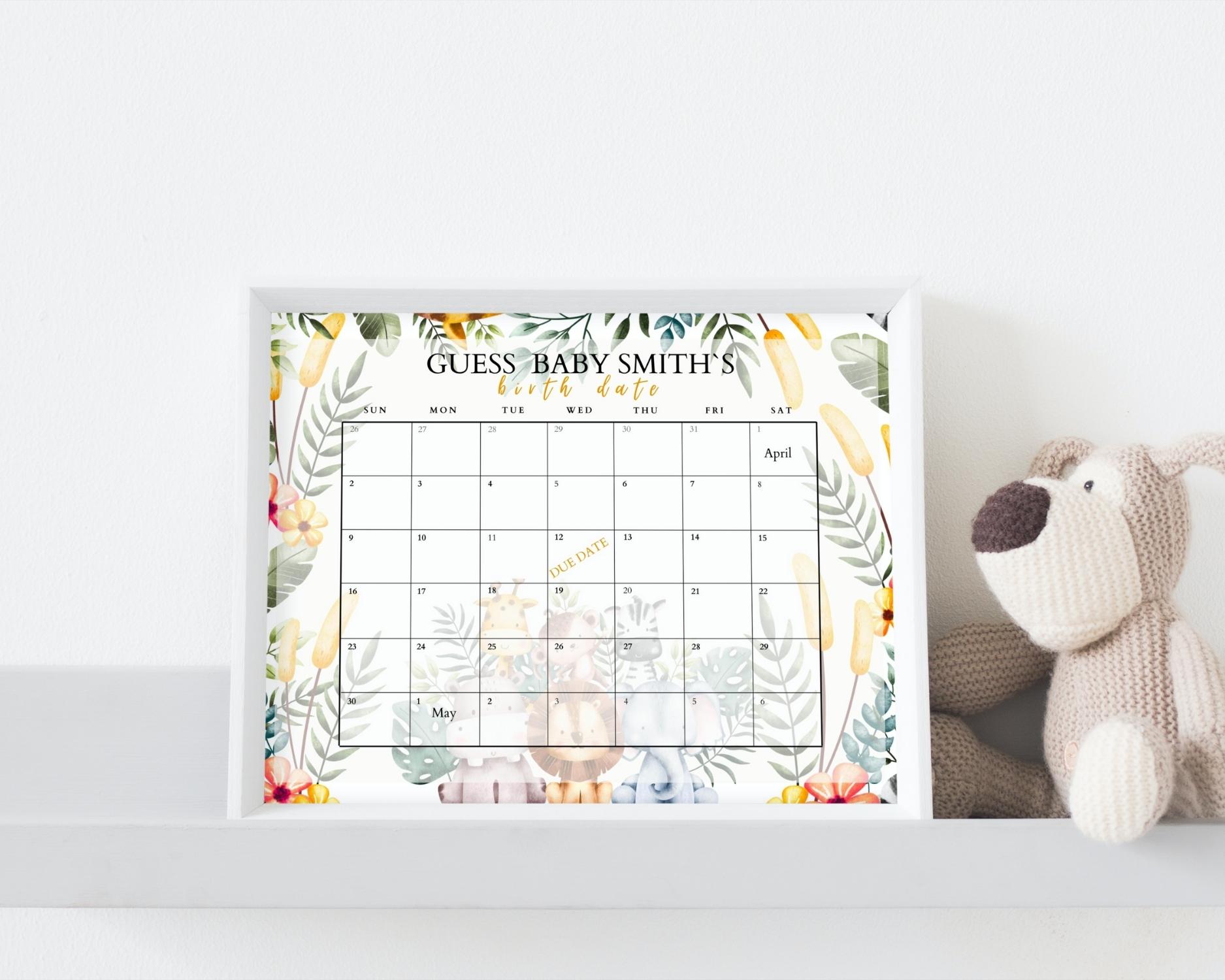 Get your guests predicting the big day with our ‘Guess the Due Date Calendar’ activity! This printable game allows guests to mark their guesses for when the baby will arrive. It’s a delightful way to involve everyone in the anticipation. You’ll receive a customizable due date calendar template, where guests can write down their predictions. After the baby’s birth, compare the guesses and celebrate the closest guesser!
