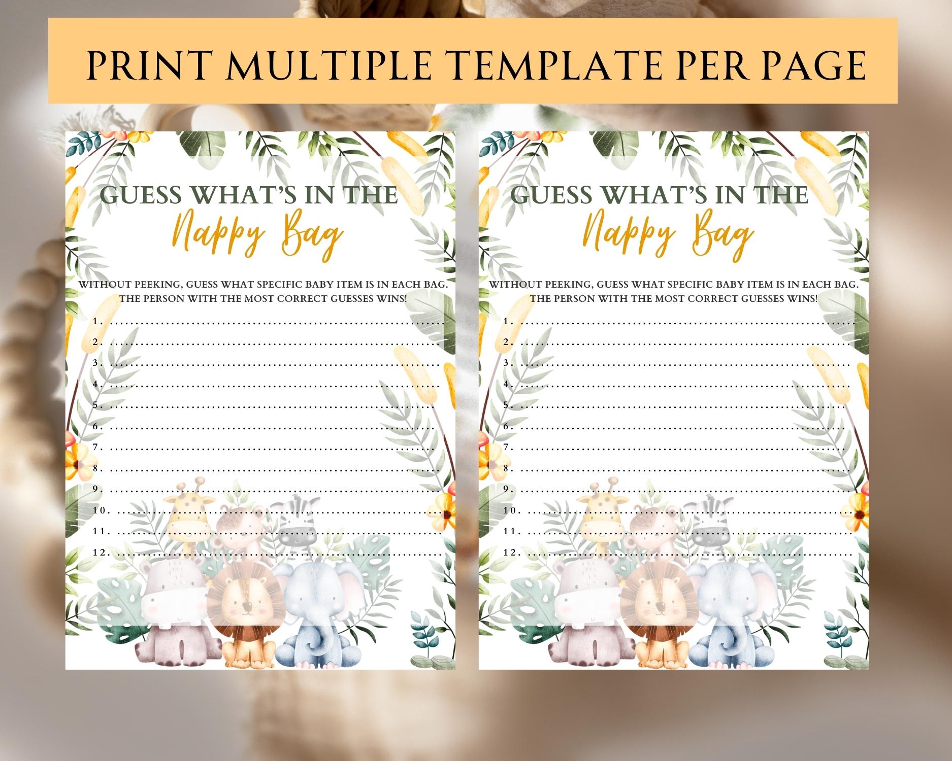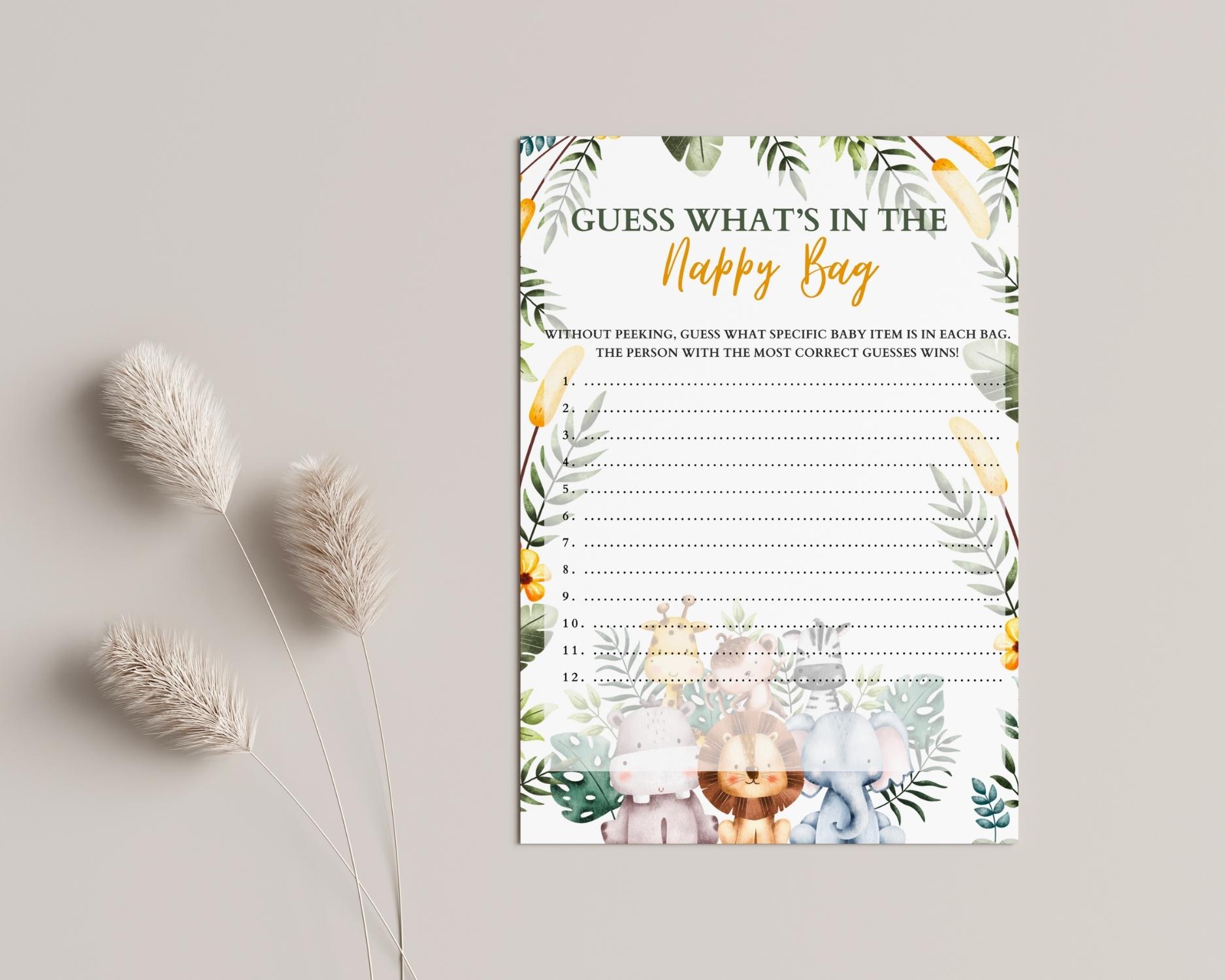 Explore the mystery of motherhood with our ‘Guess What’s in the Nappy Bag’ game! Guests will guess items hidden in a typical nappy bag. It’s a practical yet amusing game that promises lots of laughs. Download includes printable PDFs and an editable Canva version for a custom experience.