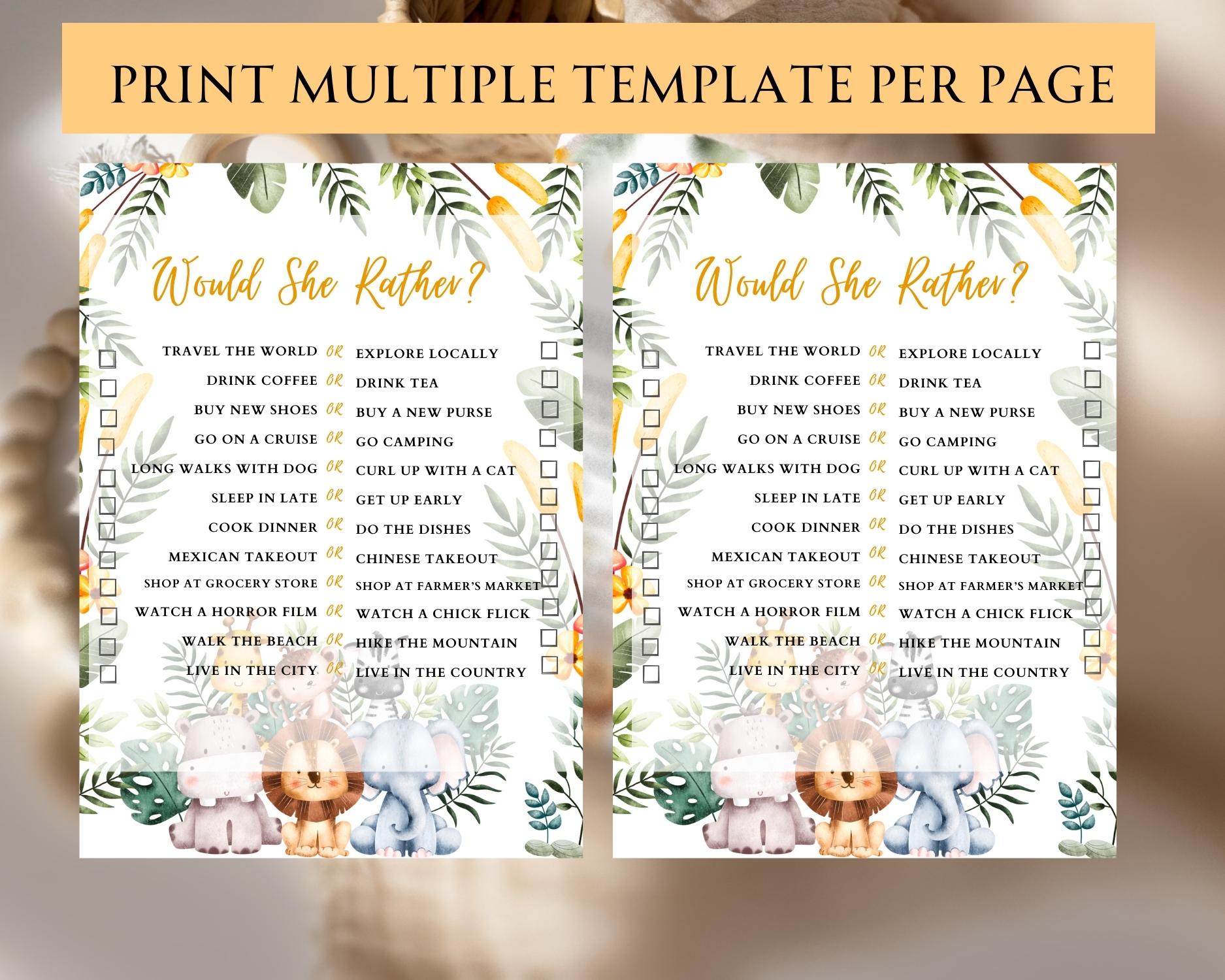 Discover the mom-to-be’s preferences with our ‘Would She Rather’ game! Guests guess between two options what she would prefer. It’s a personal and engaging way to focus on the guest of honor. Includes editable Canva and printable PDF versions.